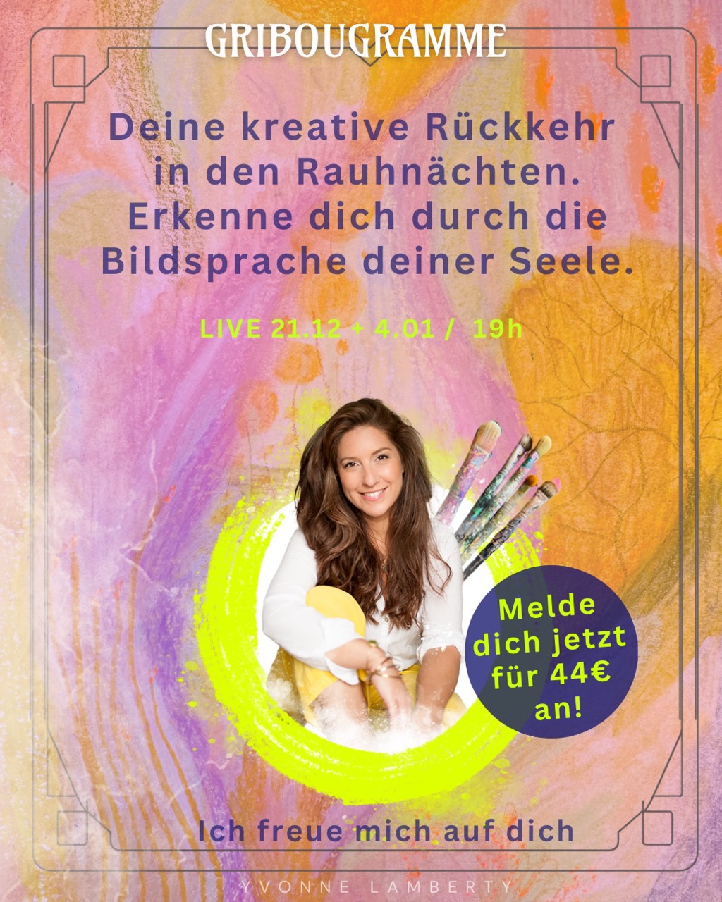 Finde in den Rauhnächten deinen Weg, deine Seele auszudrücken! Ich zeige dir (wieder) wie! In der Gribougramme® Methode kann sich deine Seele wieder kreativ entfalten und dir tiefe Erkenntnisse für die Leinwand deines Lebens bringen.