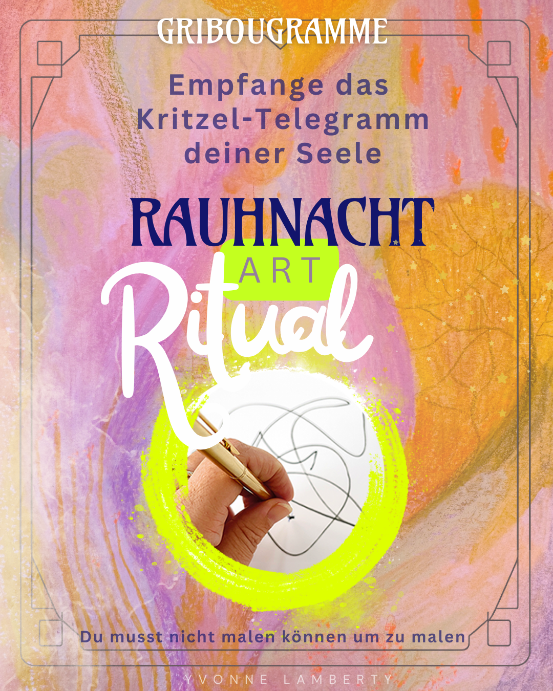 Lass dich von mir in die Magie des transzendenten Malens einweihen und empfange dein erstes Kritzeltelegramm deiner Seele. Mit den ersten Schritten meiner Gribougramme®️Methode führe ich dich durch dieses kreative ART Ritual.